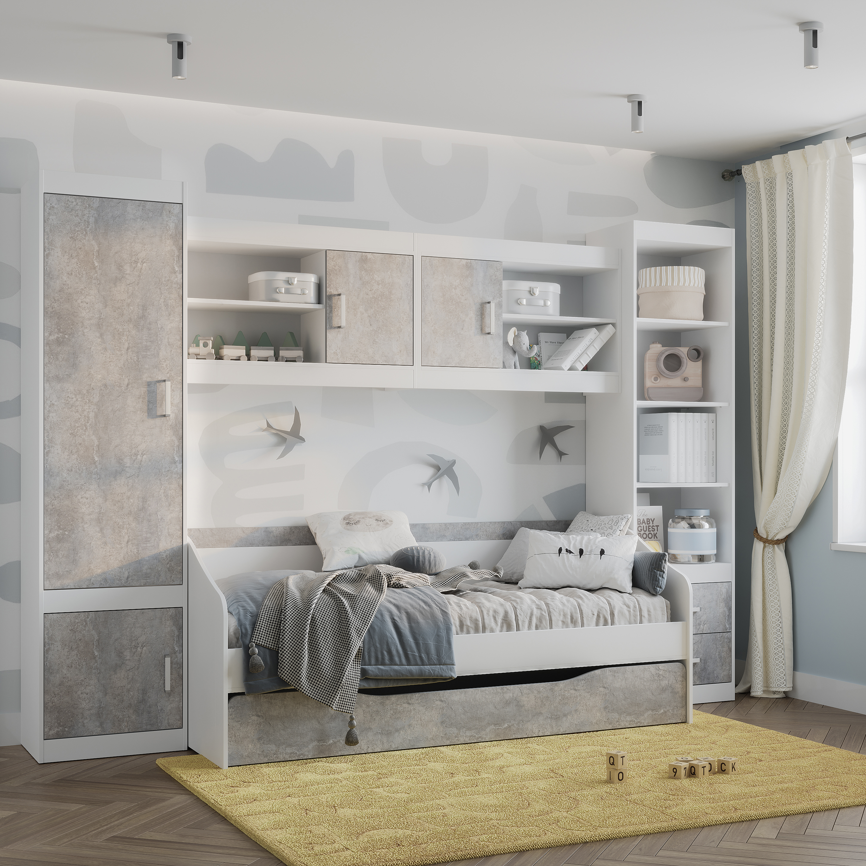 "Паскаль" кровать детская белый/цемент светлый