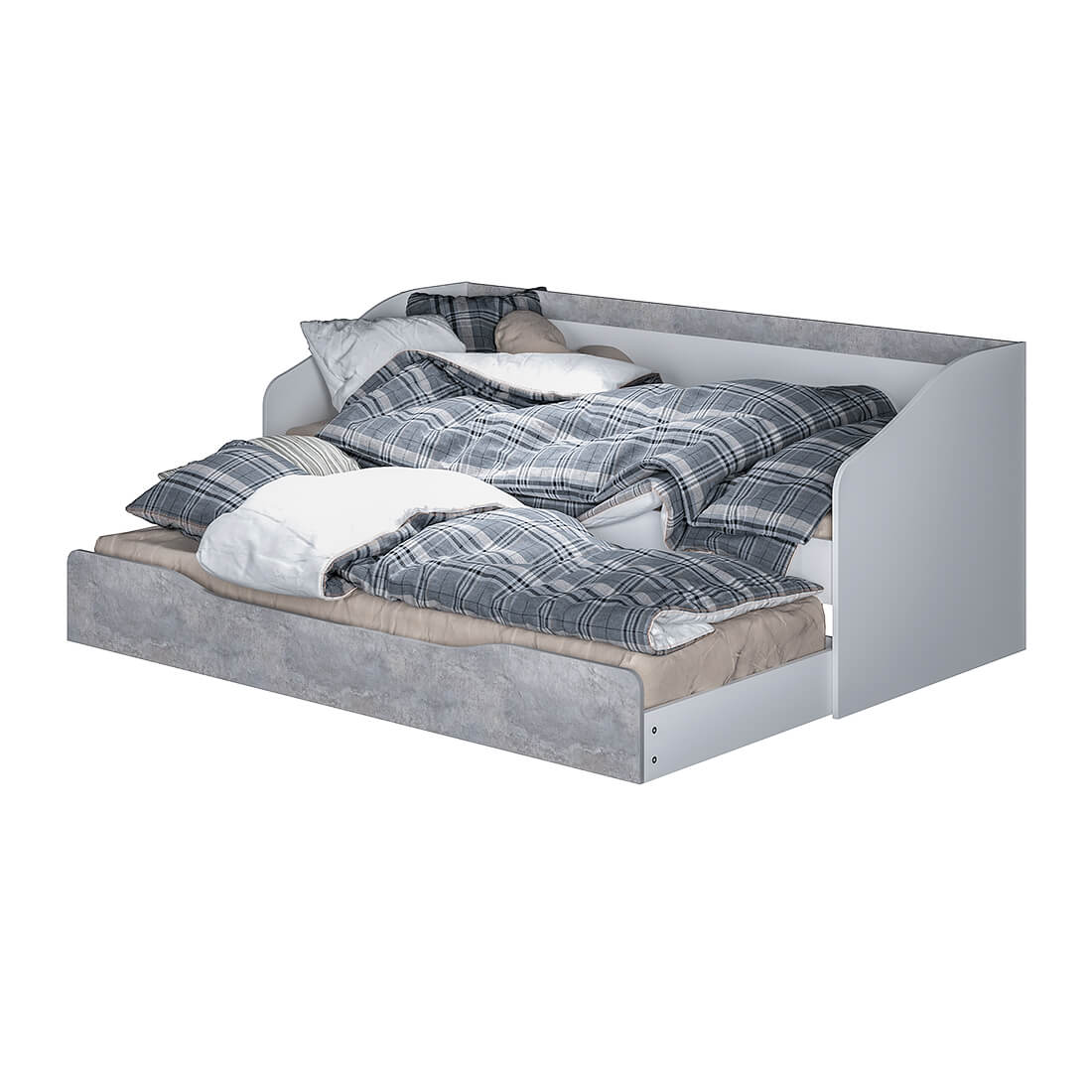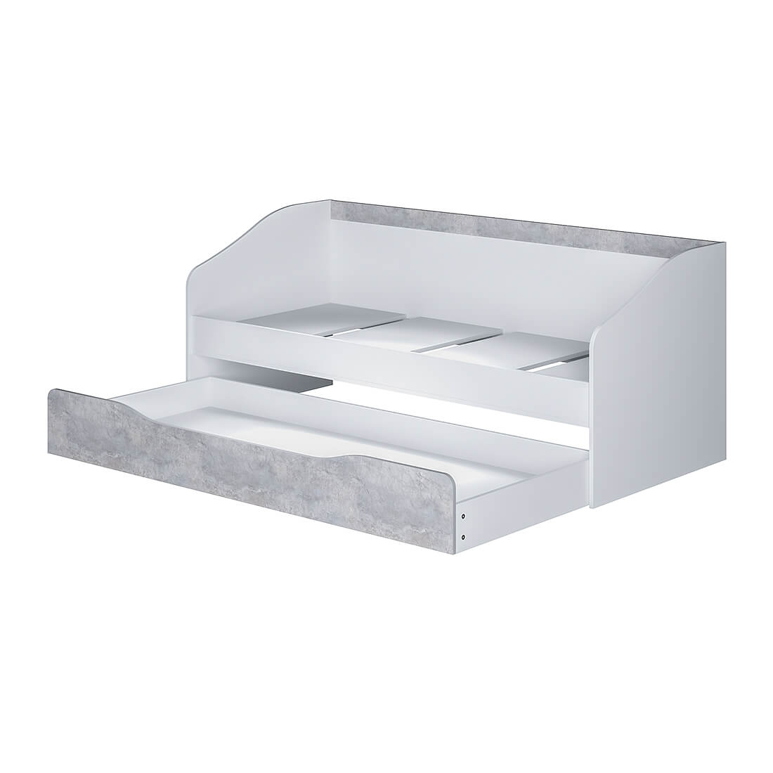 Детская кровать "Паскаль" выполнена из ЛДСП в комбинации двух цветов "белый" и "цемент светлый": • большой выдвижной ящик станет отличным местом хранения для необходимых вещей или игрушек.