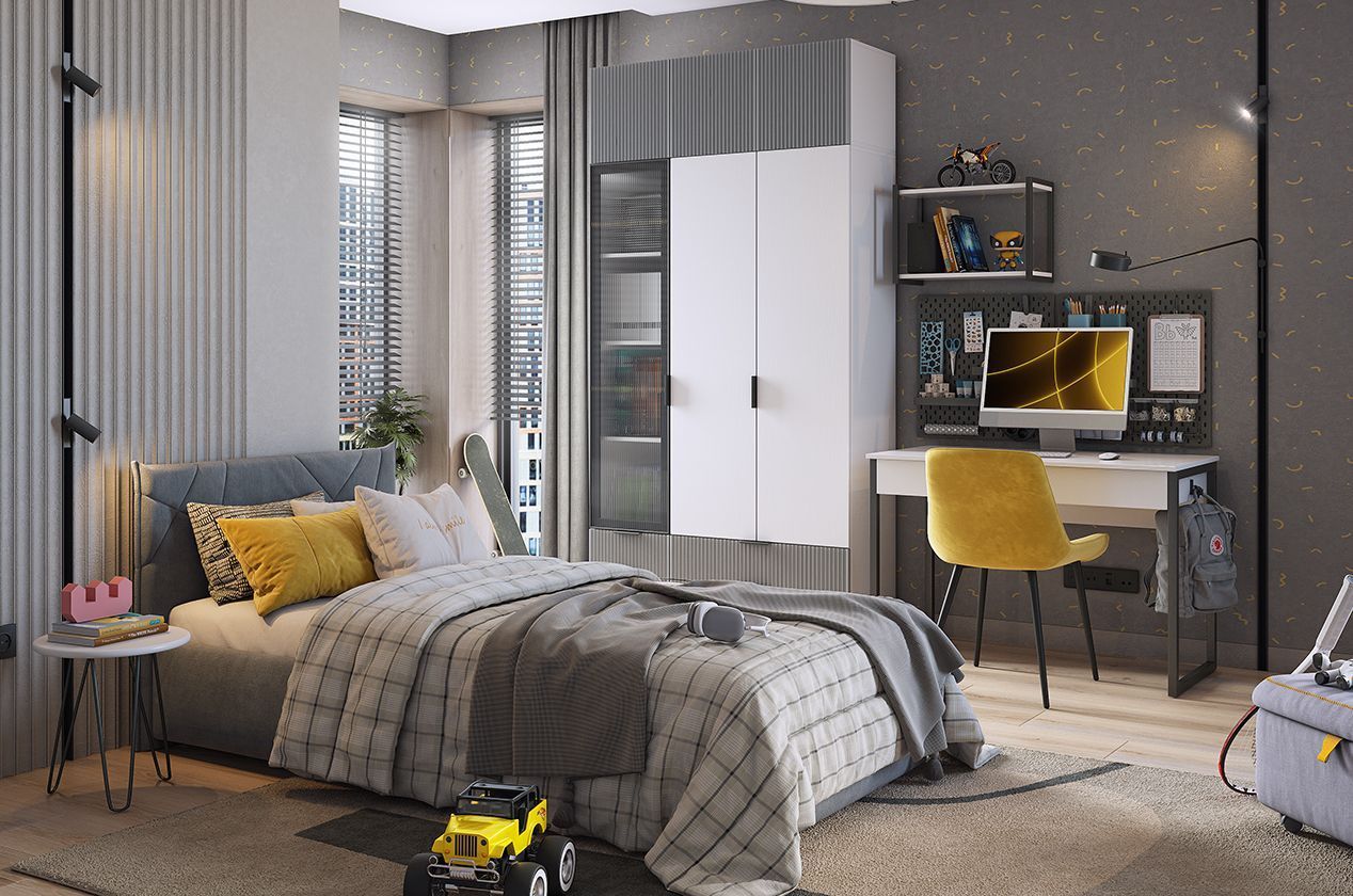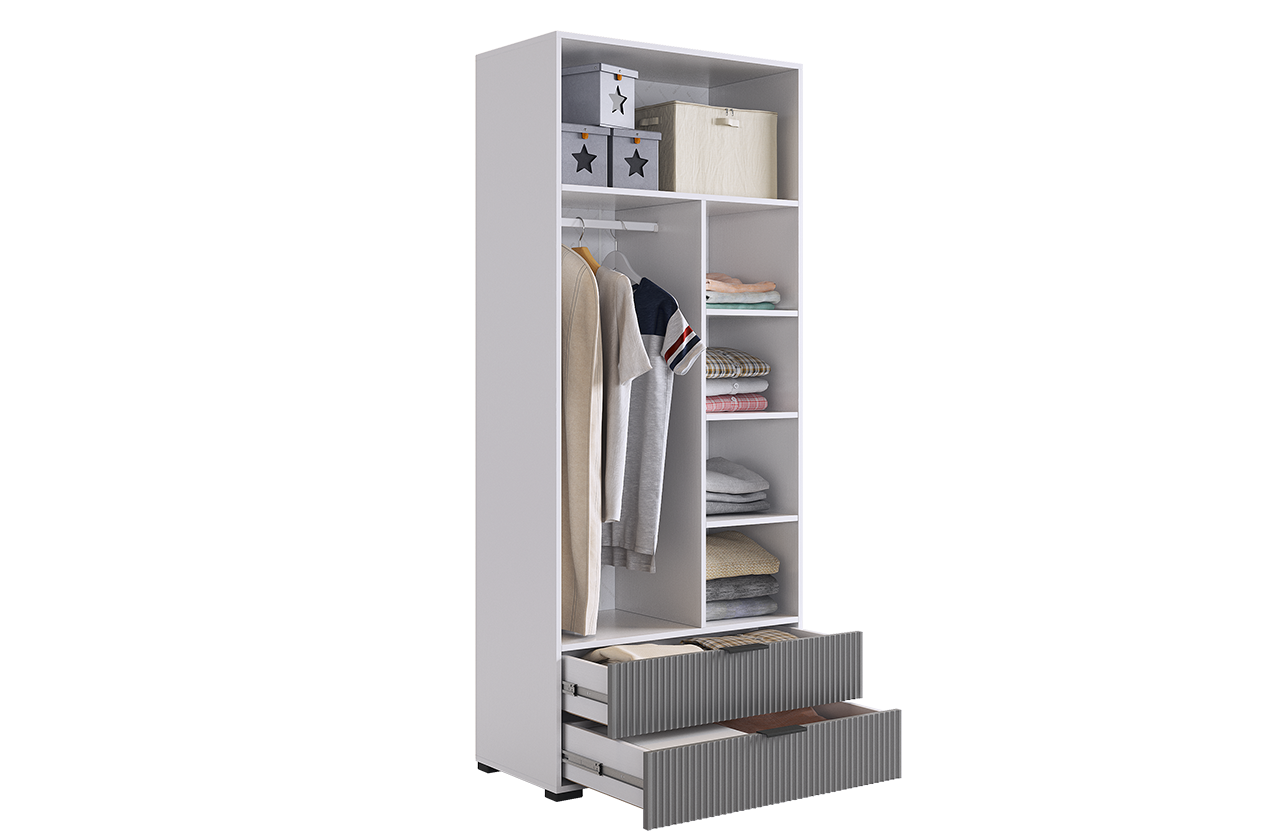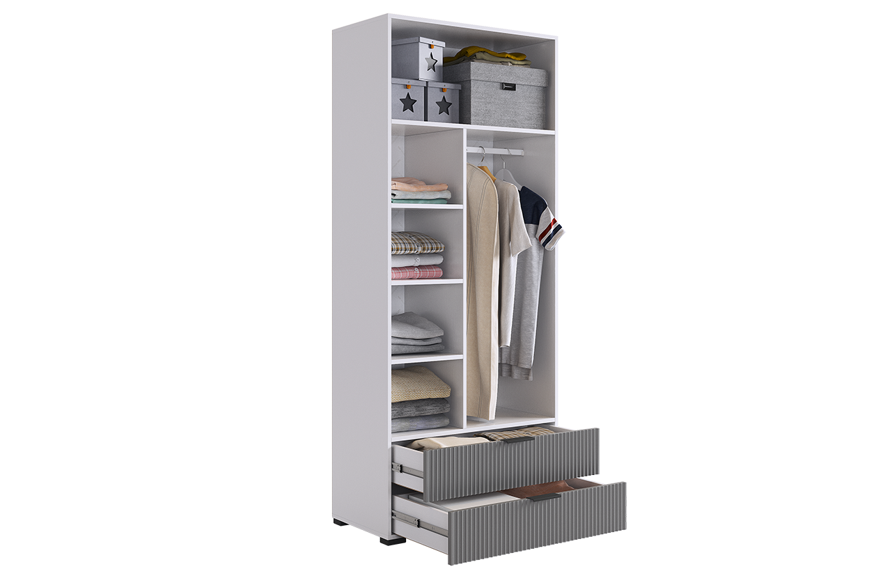 Зефир Шкаф двухдверный 120.01, (800х422х1900) белое дерево/серый (эмаль)
