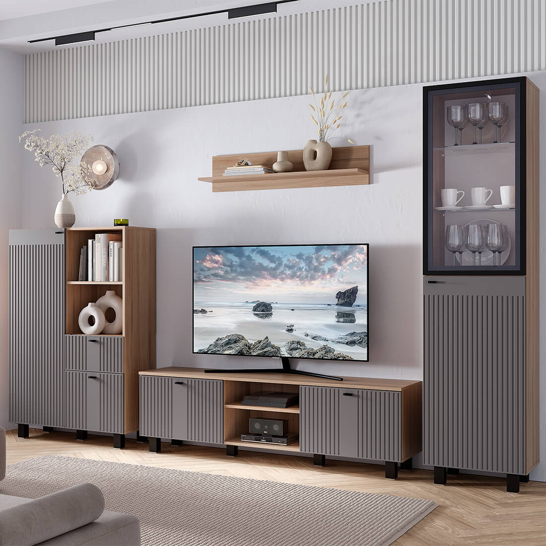 Гостиная "Олива" - это идеальное сочетание современного дизайна и функционала. Модель выглядит презентабельно и стильно. Матовые фасады из МДФ пастельного оттенка с оригинальной фрезеровкой будут отлично гармонировать как с насыщенными и нестандартными, так и с классическими решениями в интерьере.