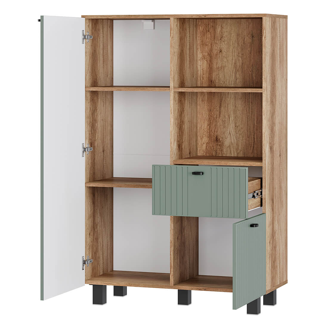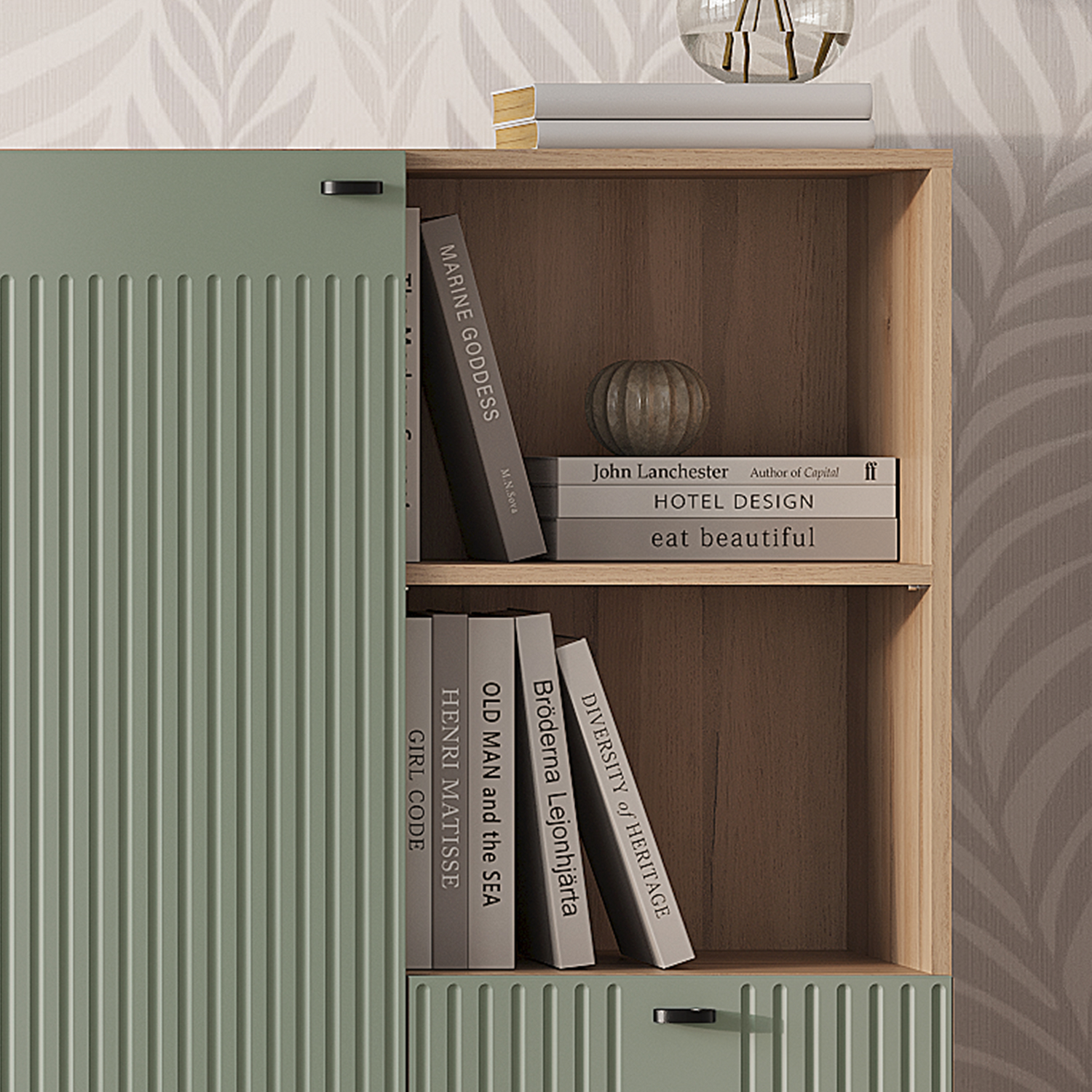 Олива ШК-16 - стильный и компактный шкаф, который отлично подойдет как для гостиной, так и для кухни. Модель состоит из шести вместительных полок для хранения. На двух открытых полках можно разместить вазы, сувениры или красивую посуду. Удобный ящик с эргономичной ручкой подойдёт для мелочей. Шкаф "Олива" - лучший вариант для тех, кто стремится сохранять порядок - под него легко пройдёт робот-пылесос. Красивые фасады с необычным дизайном дополнят любой интерьер.