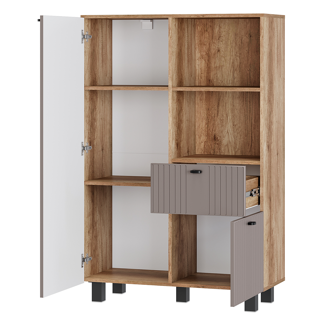 Шкаф "Олива" ШК-16 - стильный и компактный шкаф, который отлично подойдет как для гостиной, так и для кухни. Модель состоит из шести вместительных полок для хранения. На двух открытых полках можно разместить вазы, сувениры или красивую посуду. Удобный ящик с эргономичной ручкой подойдёт для мелочей. Шкаф "Олива" - лучший вариант для тех, кто стремится сохранять порядок - под него легко пройдёт робот-пылесос. Красивые фасады с необычным дизайном дополнят любой интерьер.