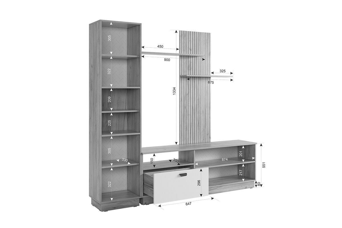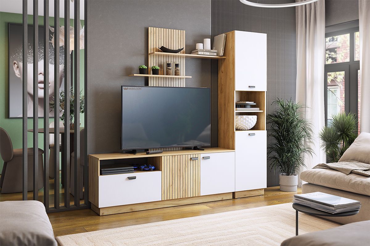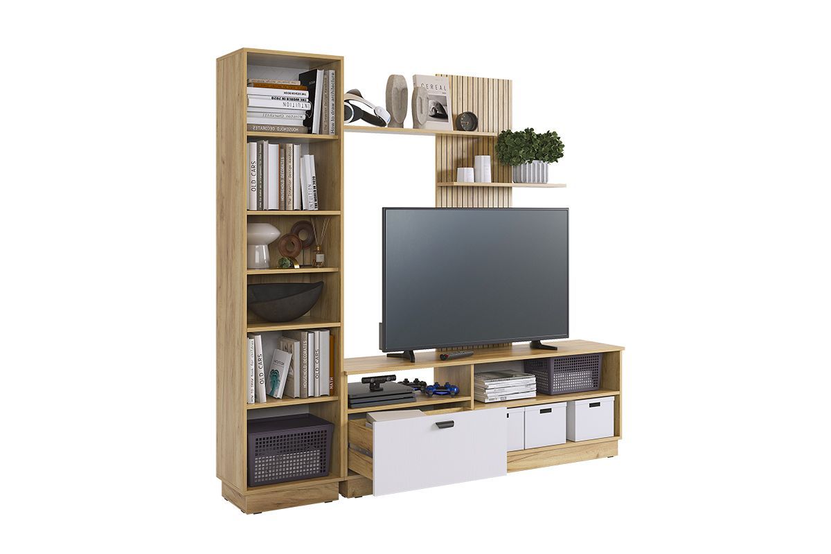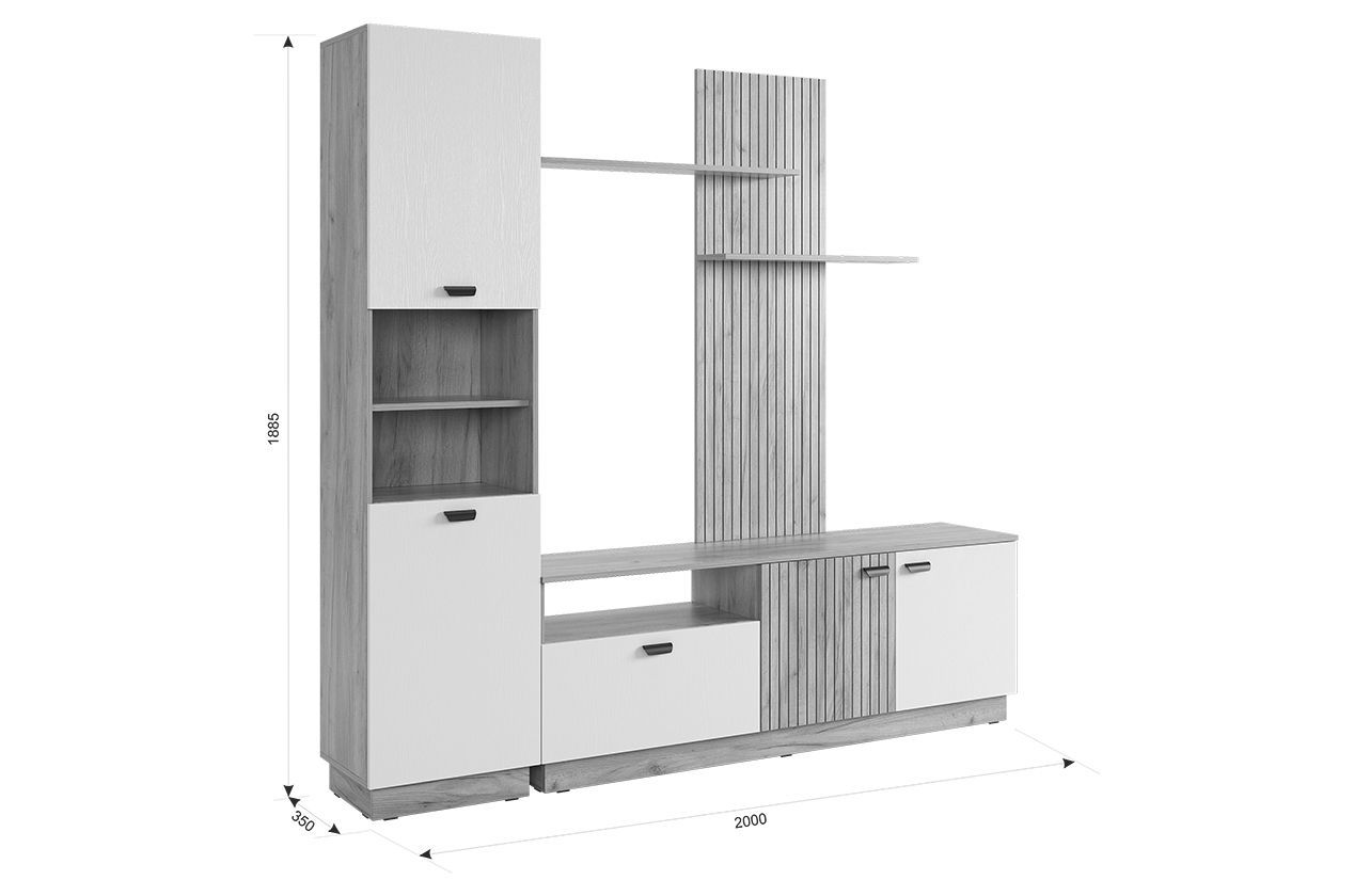 Гостиная "Моди К1", (2000х350х1885) дуб крафт золотой/белое дерево