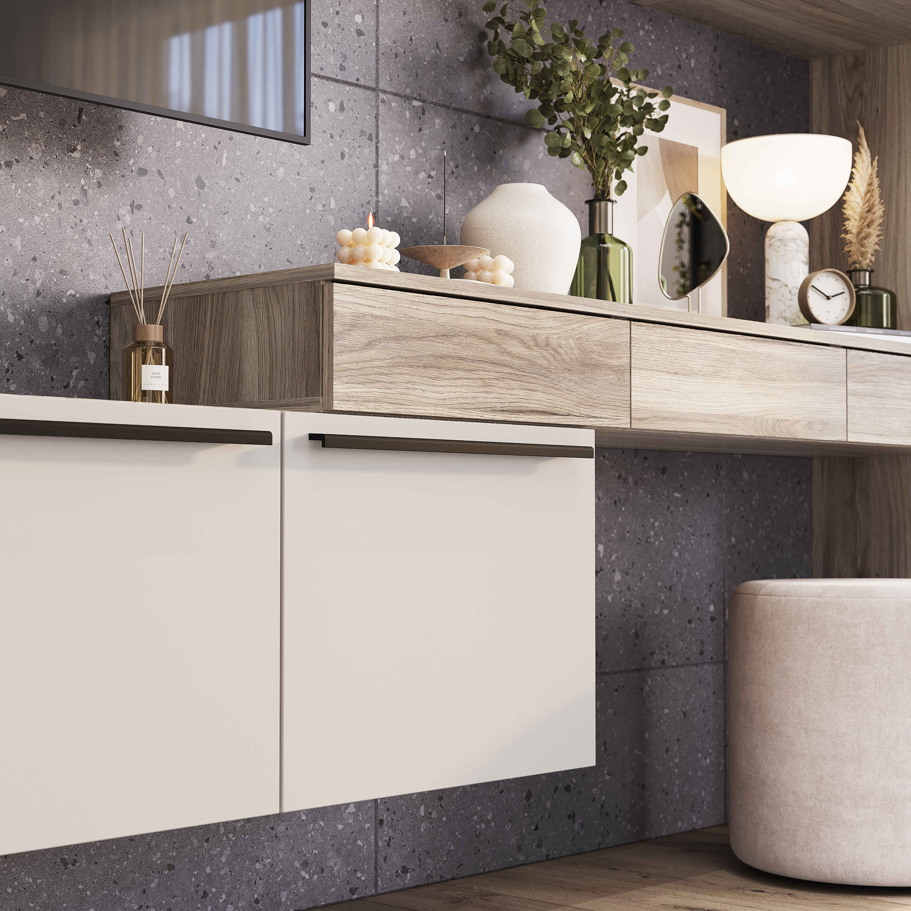 Тумба «Урбан» - это стильное и практичное решение, которое поможет организовать грамотное хранение мелочей и сэкономить пространство в комнате. Тумба крепится к стене с помощью навесов, ее можно расположить над рабочим столом, в гостиной или спальне. Интересная особенность дизайна данной модели – это минималистичные фасады без ручек. Ящики открываются с помощью толкателей с магнитами.
