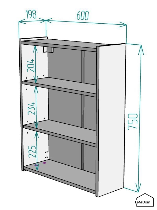 • Задняя стенка изготовлена из ХДФ (плита повышенной плотности).