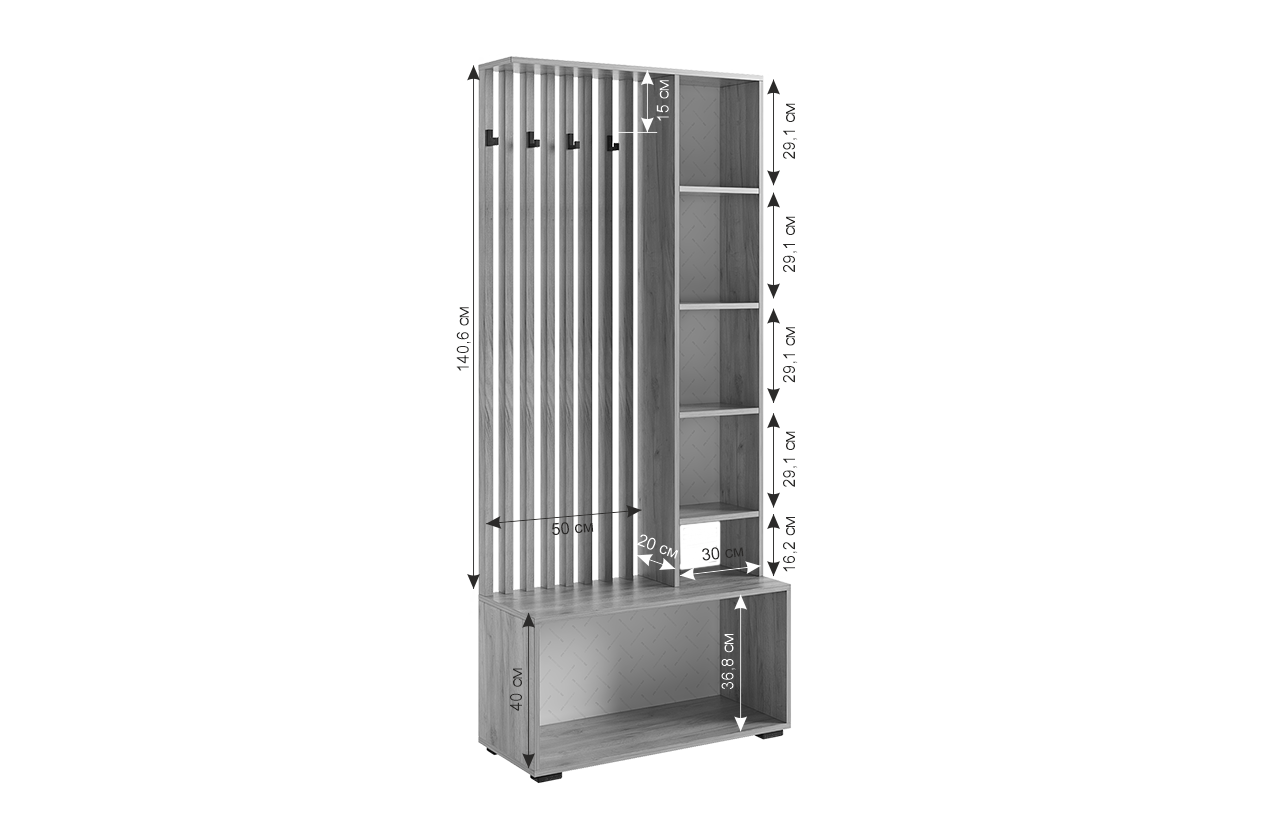 Бери Прихожая, (800х350х1826) дуб крафт золотой/графит