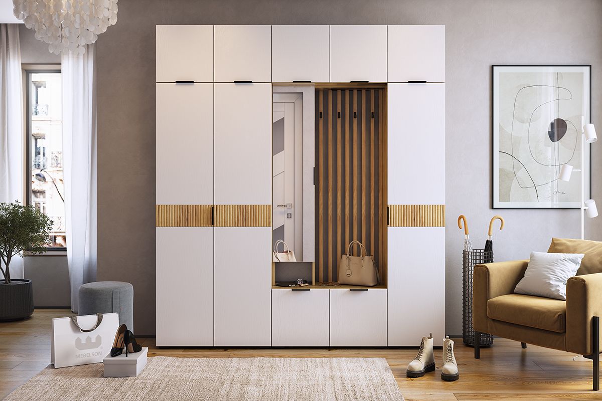 Бери Шкаф двухдверный, (800х350х1826) дуб крафт золотой/белое дерево