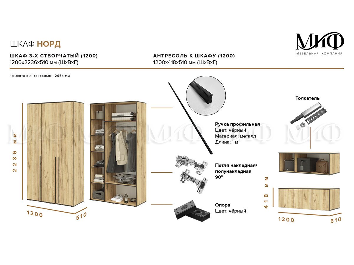 МИФ Норд Шкаф 3-х ств.(1200) (Дуб крафт)