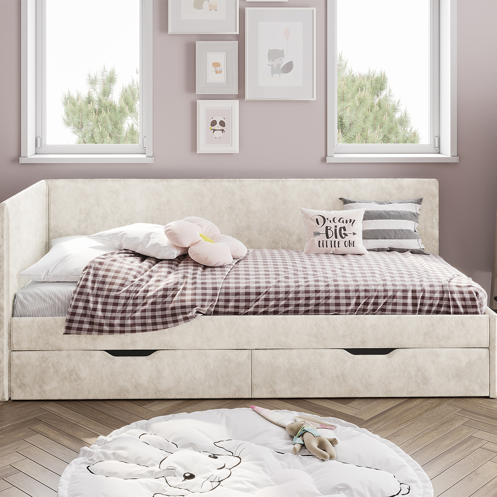 Кровать «Лео» - лучший выбор для детской комнаты. Плавные и лаконичные линии конструкции создадут атмосферу гармонии и спокойствия. Одно из важных преимуществ кровати – это мягкая обивка из велюра, что обеспечивает более комфортное и безопасное использование. Корпус – ЛДСП/ДСП 16 мм, оклеенный поролоном 20 мм и тканью велюр. Фасад – ЛДСП 16 мм, оклеенный поролоном 20 мм и тканью велюр. Ткань велюр с эффектом хамелеона, не оставляет следов. Этот эффект достигается за счет специальной обработки материала, который содержит глянцевые частицы, отражающие свет под разными углами.