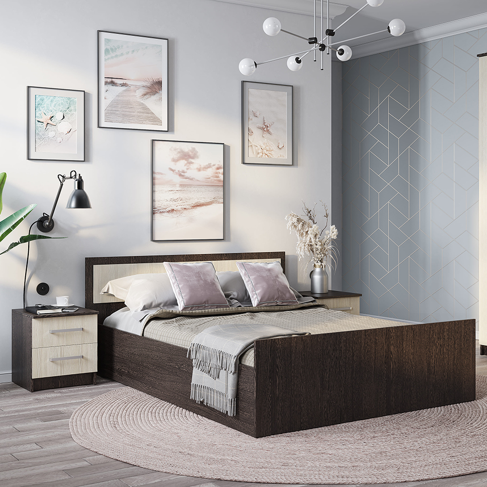 Кровать "Фиеста" выполнена из высококачественной ЛДСП в цвете "венге". Изголовье имеет вставку цвета "лоредо". У кровати отсутствуют ножки, это избавит вас от скопления пыли под ней. Основание приобретается отдельно - проложки Light.