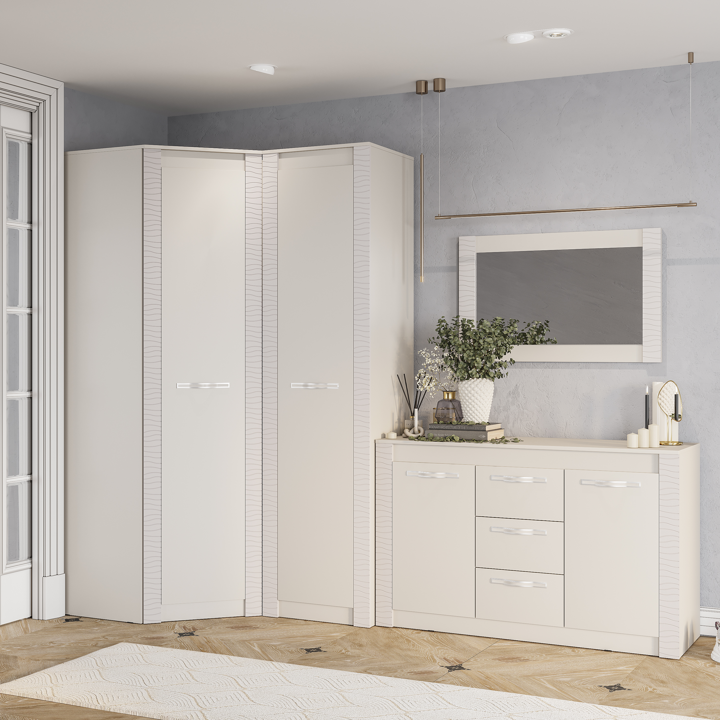 Модульная коллекция «Монако» - это универсальное решение с эргономичным дизайном и функциональностью для современного дома. Фрезеровка с волнообразными узорами на фасадах привлекает внимание. Интерьеры с белыми декорами в 2024 году заменяются на нюдовые тона. Трендовый оттенок «кашемир» позволяет использовать в интерьере теплые и холодные декоры, а также различные варианты цветового решения домашнего текстиля, аксессуаров и других элементов. Мягкий приглушённый оттенок «кашемир» является изысканным выбором для стильного дома и придаёт нотку нежности и уюта.
