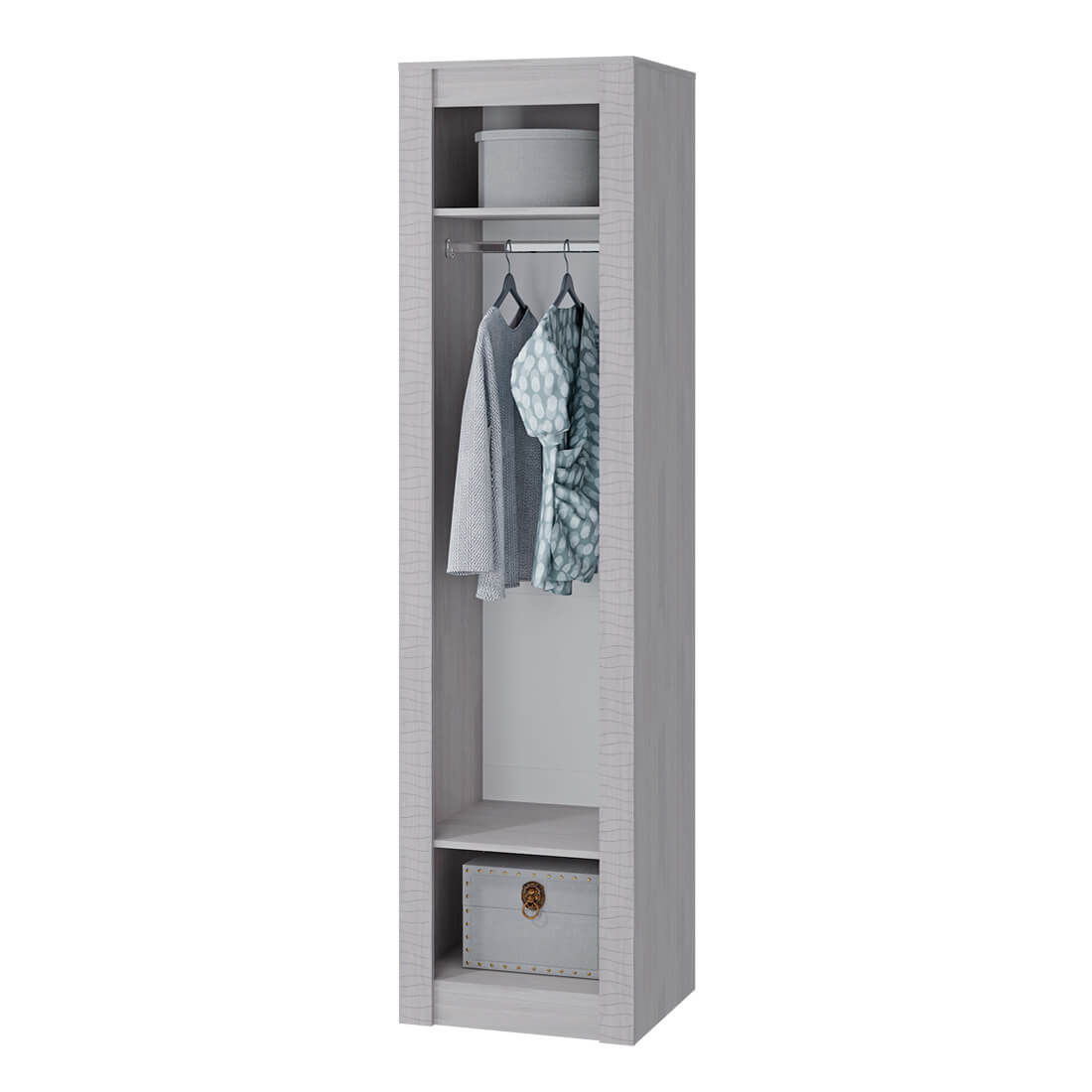 Закрытый пенал "Монако" – практичный и стильный вариант для интерьера. Модель позволит разместить небольшой гардероб. Пенал состоит из отделения со штангой для вешалок и ниши для вещей. Изделие выполнено из ЛДСП в цвете ясень белый, фасад дверцы оснащен эргономичной ручкой. Пенал сможет вписаться в комнаты любого стиля.