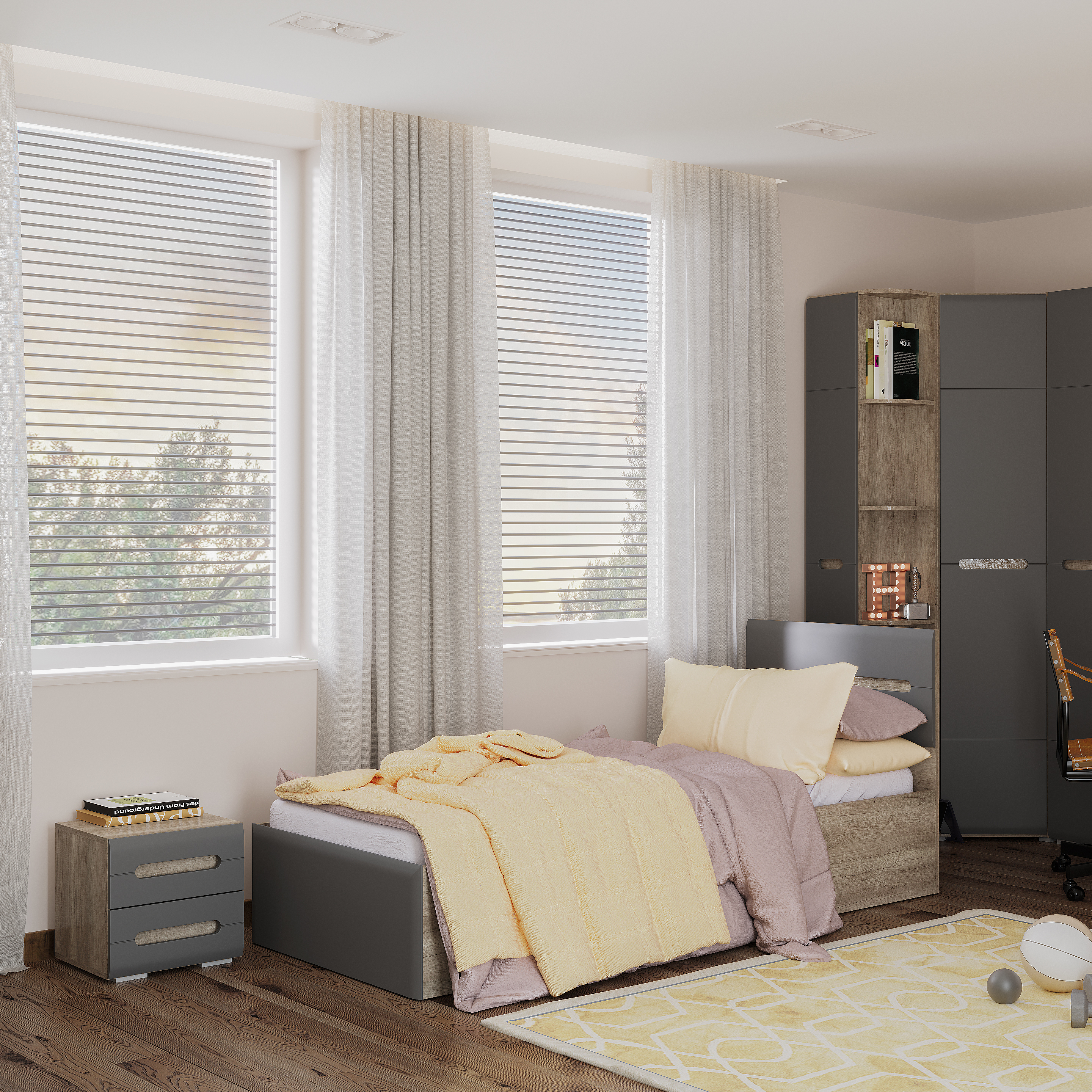 Стильная односпальная кровать "Наоми" – это прекрасный выбор для спальни ребенка или подростка. Выполненная из ЛДСП цвета "дуб каньон" и МДФ серого цвета, она будет отлично смотреться в интерьере любого стиля.