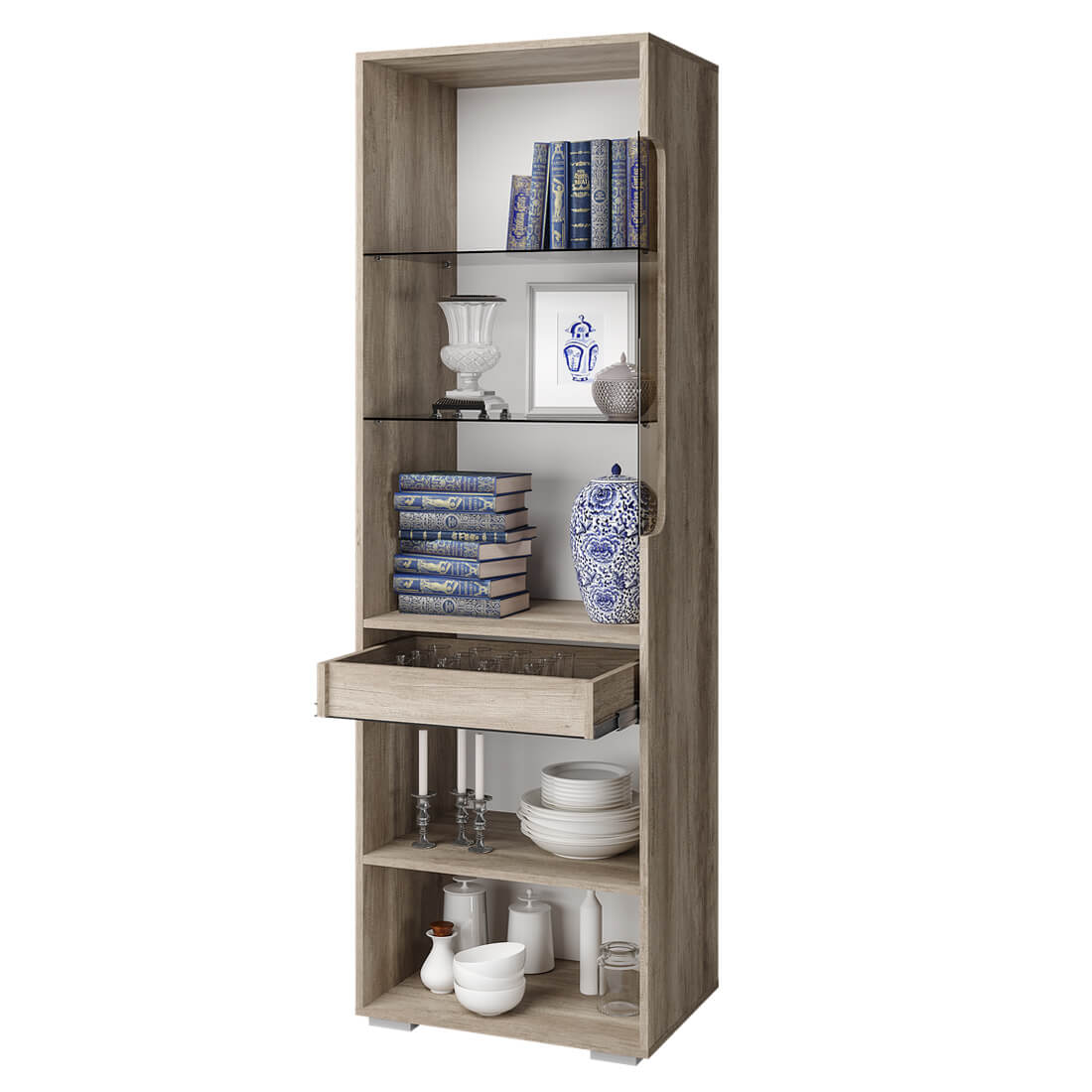 Максимальная нагрузка на стеклянную полку - 3 кг, на ящик - 5 кг, на полку ЛДСП - 10 кг.