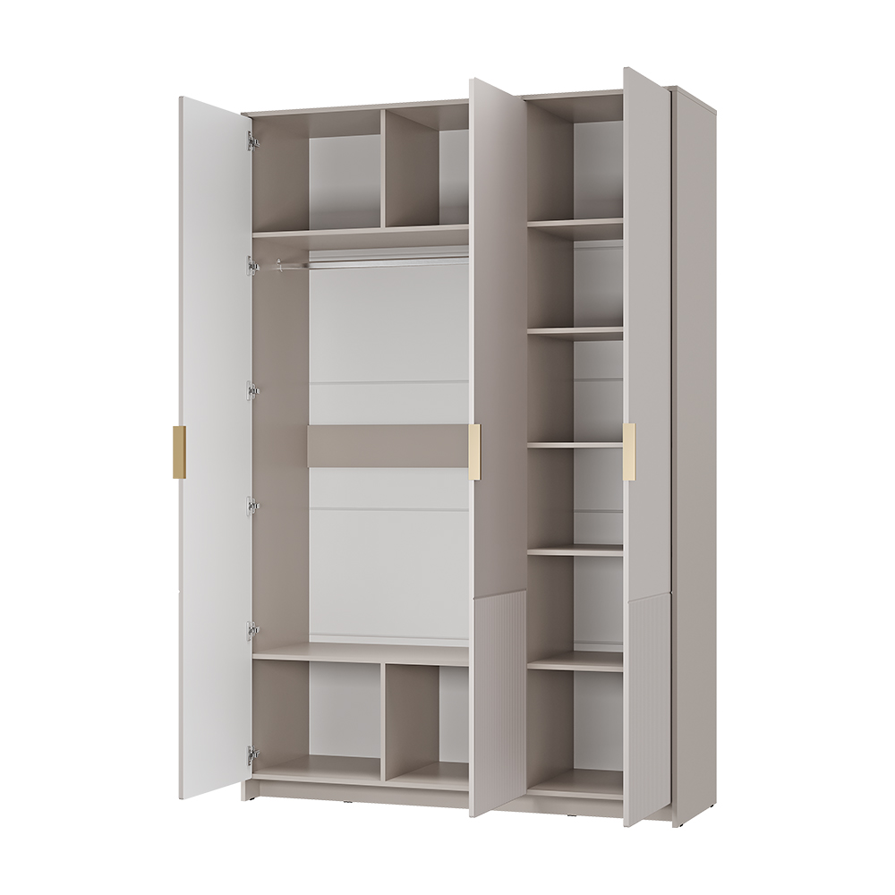 Трехстворчатый «Пандора» оснащен всеми необходимыми зонами для хранения гардероба: полками для трикотажа и белья, отсеком для вертикального хранения, а также полками для белья и аксессуаров. Трехстворчатый шкаф подойдет для обладателей большого гардероба.