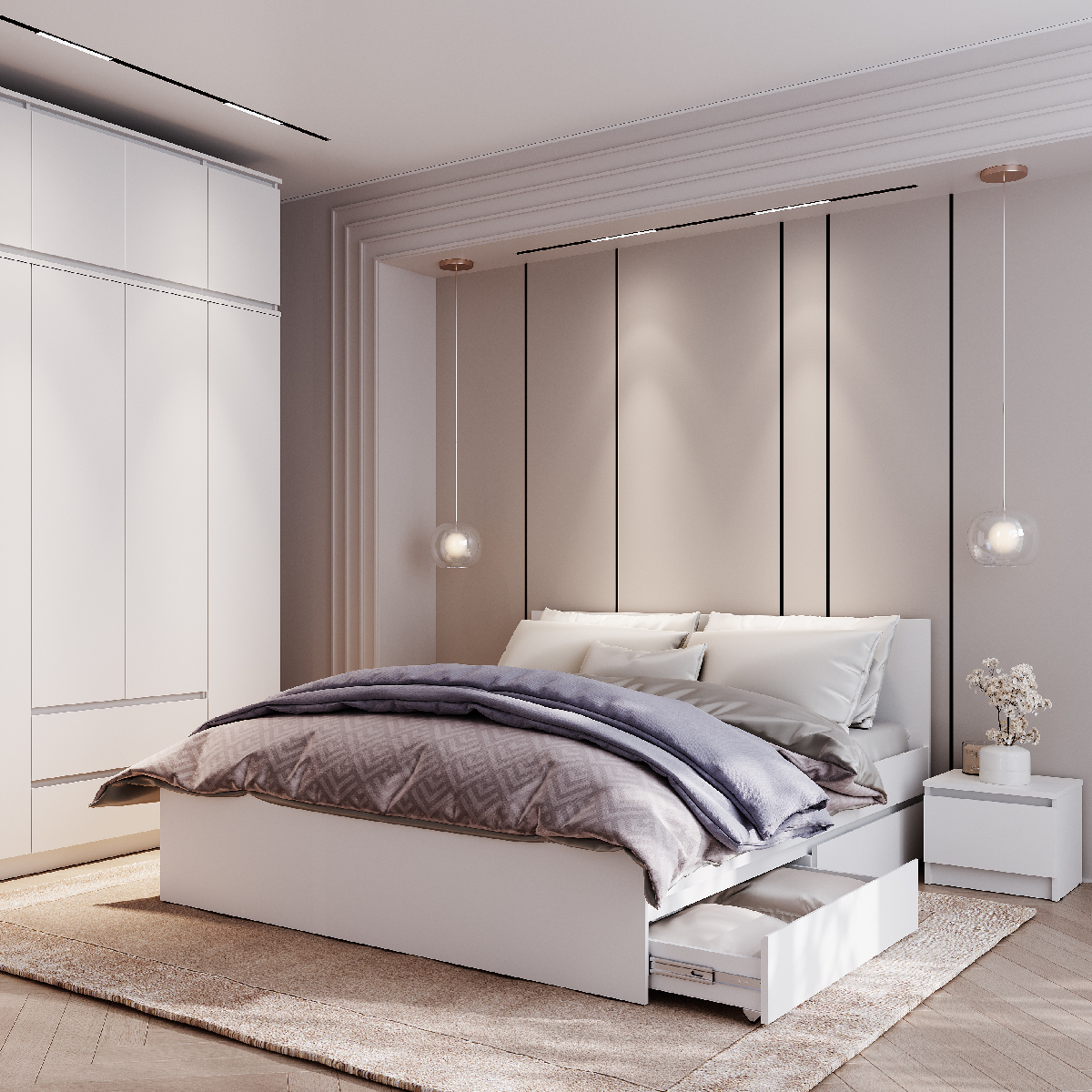 Мебель этой коллекции оснащена надежными опорами из безопасного пластика – это позволит не только комфортно проводить влажную уборку, но и уберечь напольное покрытие от повреждений. Выдвижные элементы коллекции оснащены шариковыми направляющими.