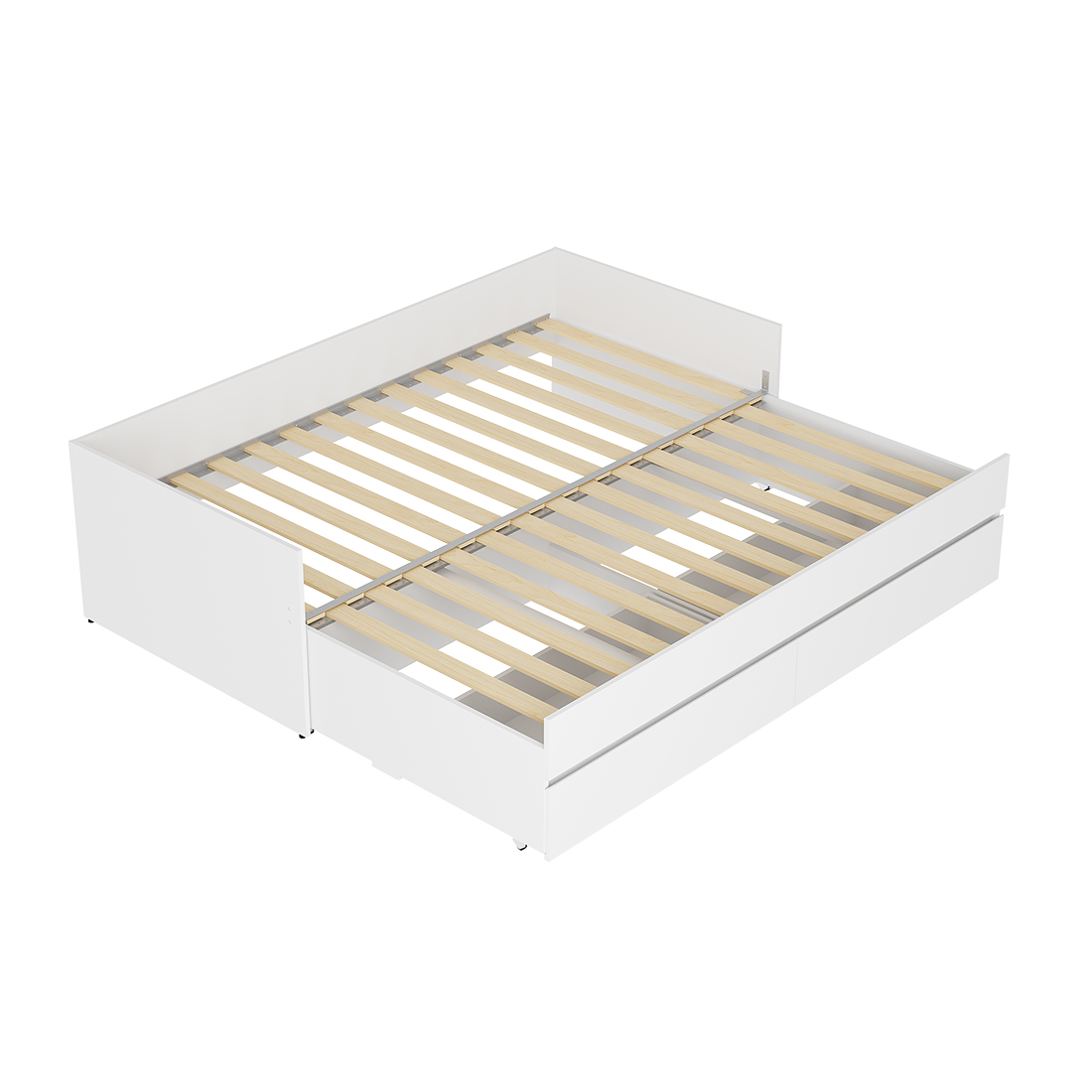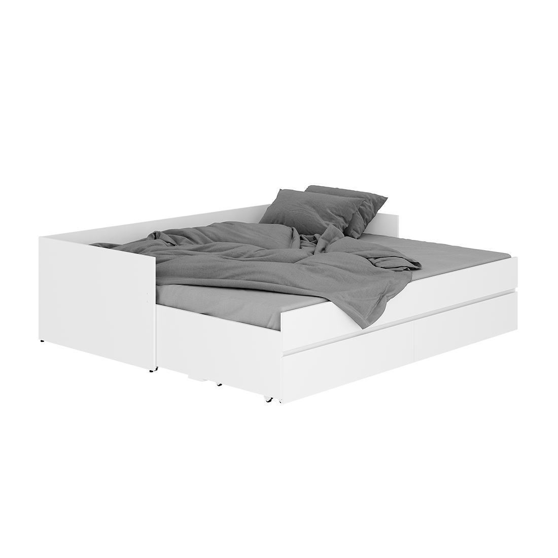 Кровать-трансформер из коллекции "Симпл" - это практичная и комфортная модель для современной спальни. Простой и стильный дизайн покорит ценителей минимализма. Данная модель удобна в использовании в небольших помещениях - при необходимости ее можно раздвинуть и получить дополнительное спальное место. Кровать оснащена выкатными ящиками, в которых легко размещается постельное белье, текстиль и другие вещи, которым не нашлось места в шкафу.