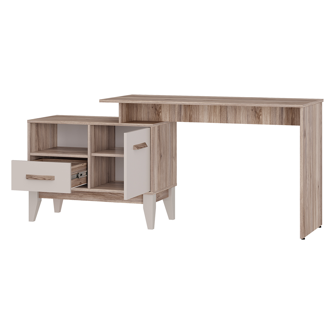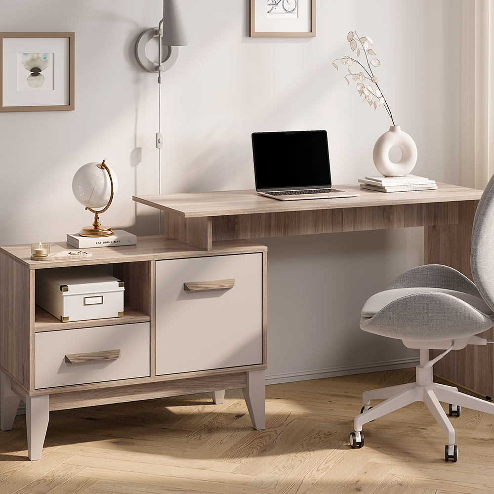 Письменный стол «Скандика» ПС-02 - это универсальное решение для дома и офиса. Данная модель оснащена удобной рабочей поверхностью, на которой можно разместить ноутбук, лампу и рабочие инструменты. Помимо рабочей поверхности также имеется встроенная тумба, которая состоит из просторного отсека за дверцей, ящика и одной открытой полки. Благодаря компактным размерам стол легко уместится даже в небольшой комнате.