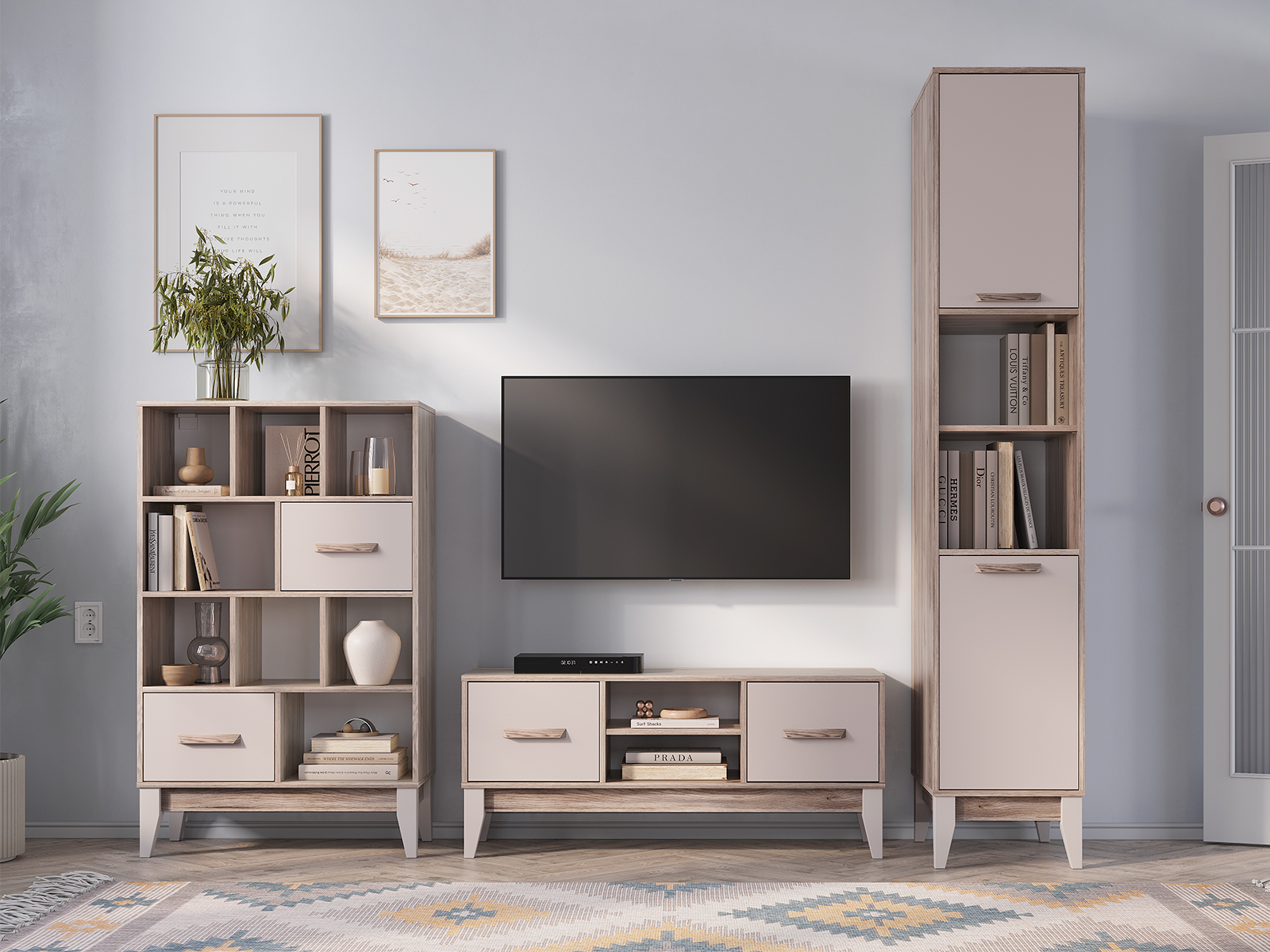 Тумба под ТВ "Скандика" ТБ-08 дуб смоки/кашемир